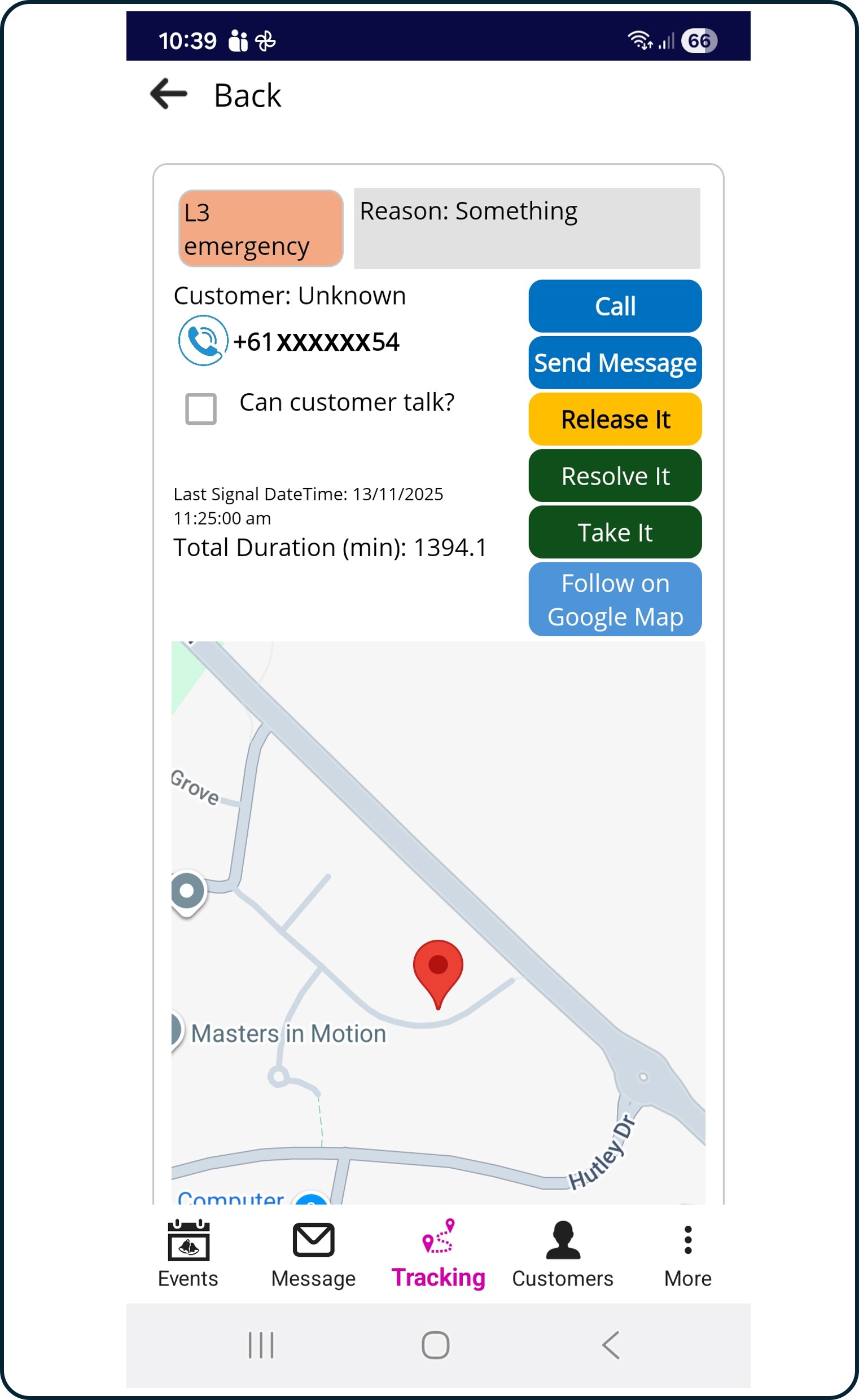 Whether your client is impacted by a fire, flood, medical emergency, accident, family violence, or other urgent situations, our Triple Zero Service allows you to securely monitor their status and maintain confidential communication.